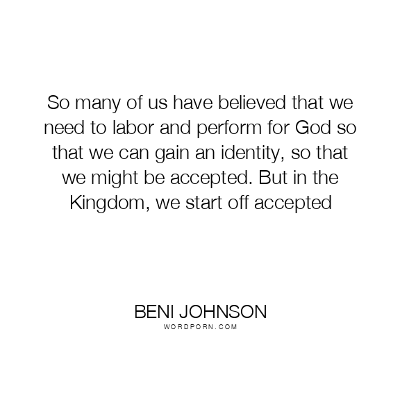 So many of us have believed that we need to labor and perform for God so that we can gain an identity, so that we might be accepted. But in the Kingdom, we start off accepted