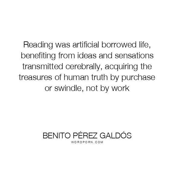 Reading was artificial borrowed life, benefiting from ideas and sensations transmitted cerebrally, acquiring the treasures of human truth by purchase or swindle, not by work