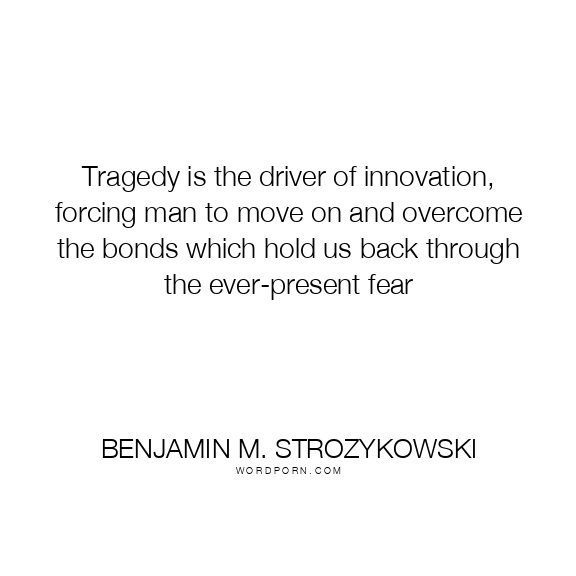 Tragedy is the driver of innovation, forcing man to move on and overcome the bonds which hold us back through the ever-present fear