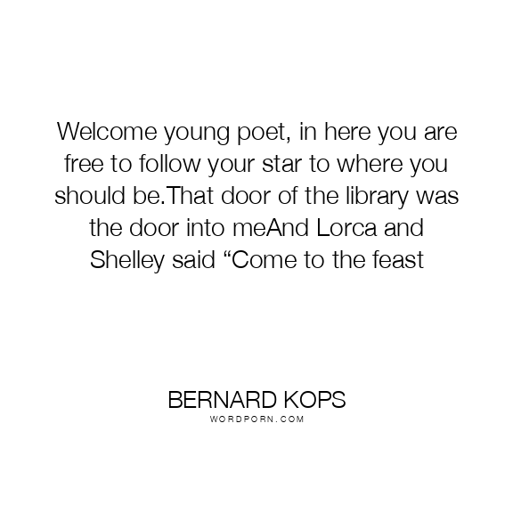 Welcome young poet, in here you are free to follow your star to where you should be.That door of the library was the door into meAnd Lorca and Shelley said “Come to the feast