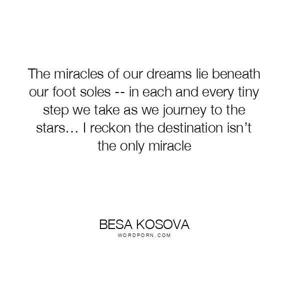 Copy Image The miracles of our dreams lie beneath our foot soles -- in each and every tiny step we take as we journey to the stars… I reckon the destination isn’t the only miracle Moms Typewriter A A SAVE THIS IMAGE