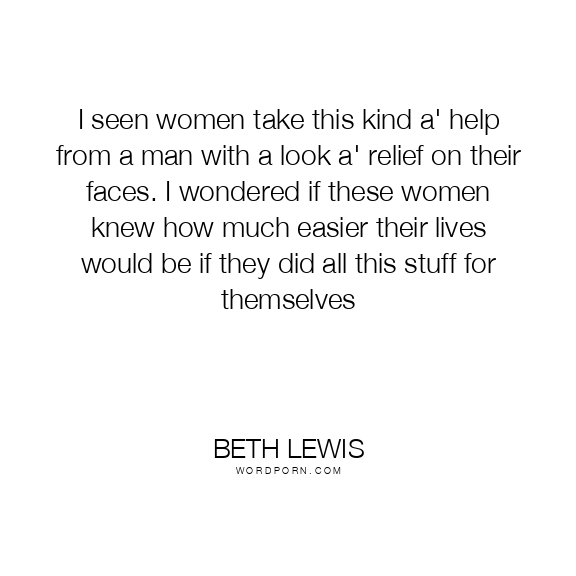 I seen women take this kind a' help from a man with a look a' relief on their faces. I wondered if these women knew how much easier their lives would be if they did all this stuff for themselves