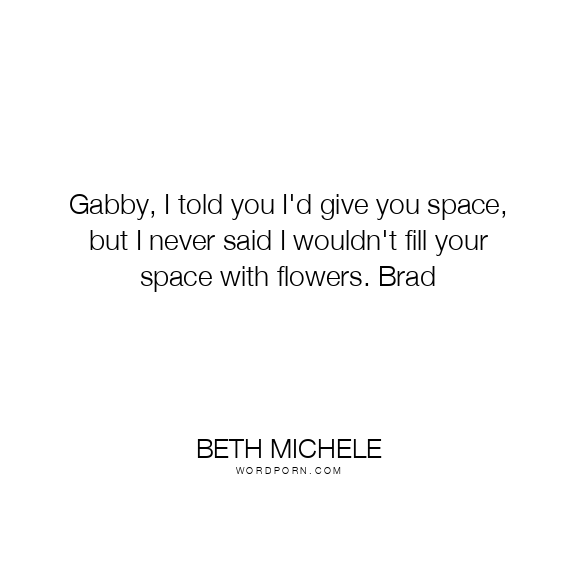 Copy Image Gabby, I told you I'd give you space, but I never said I wouldn't fill your space with flowers. Brad Moms Typewriter A A SAVE THIS IMAGE