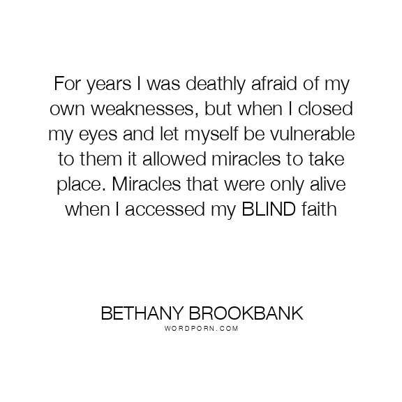 For years I was deathly afraid of my own weaknesses, but when I closed my eyes and let myself be vulnerable to them it allowed miracles to take place. Miracles that were only alive when I accessed my BLIND faith
