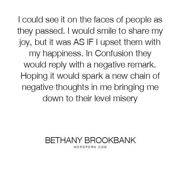 I could see it on the faces of people as they passed. I would smile to share my joy, but it was AS IF I upset them with my happiness. In Confusion they would reply with a negative remark. Hoping it would spark a new chain of negative thoughts in me bringing me down to their level misery