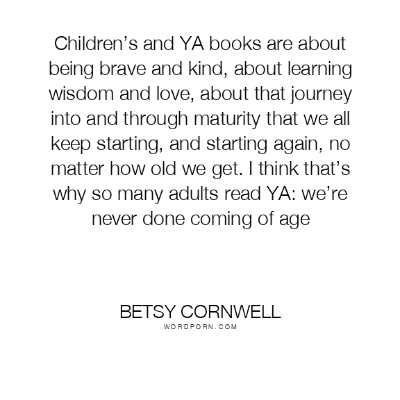 Children’s and YA books are about being brave and kind, about learning wisdom and love, about that journey into and through maturity that we all keep starting, and starting again, no matter how old we get. I think that’s why so many adults read YA: we’re never done coming of age