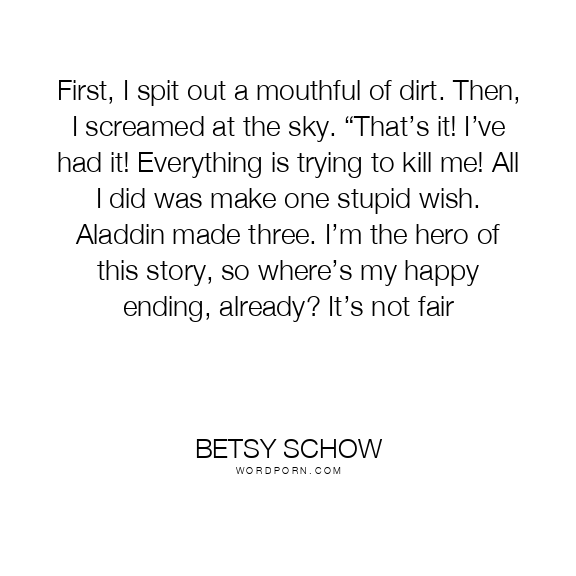 First, I spit out a mouthful of dirt. Then, I screamed at the sky. “That’s it! I’ve had it! Everything is trying to kill me! All I did was make one stupid wish. Aladdin made three. I’m the hero of this story, so where’s my happy ending, already? It’s not fair