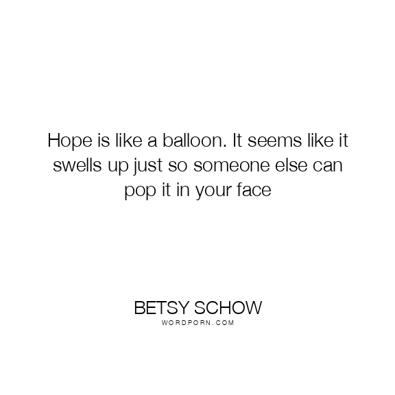 Hope is like a balloon. It seems like it swells up just so someone else can pop it in your face