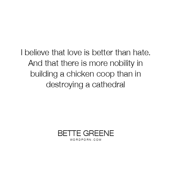 I believe that love is better than hate. And that there is more nobility in building a chicken coop than in destroying a cathedral