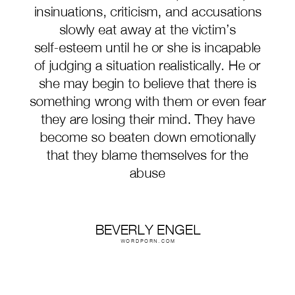 With emotional abuse, the insults, insinuations, criticism, and accusations slowly eat away at the victim’s self-esteem until he or she is incapable of judging a situation realistically. He or she may begin to believe that there is something wrong with them or even fear they are losing their mind. They have become so beaten down emotionally that they blame themselves for the abuse