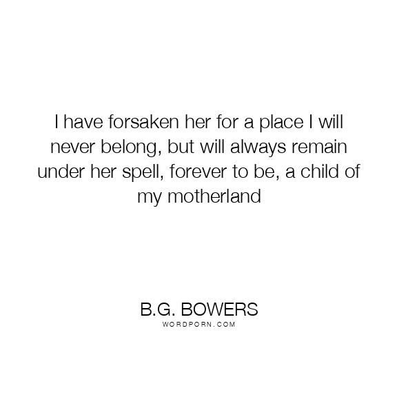 I have forsaken her for a place I will never belong, but will always remain under her spell, forever to be, a child of my motherland