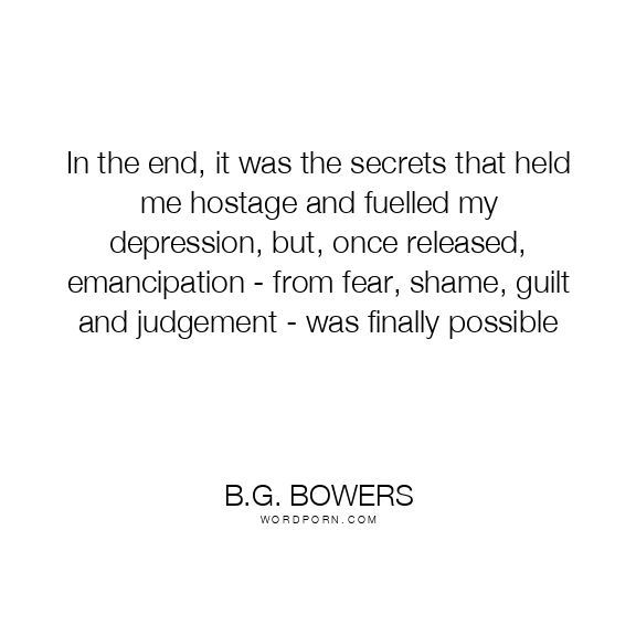 In the end, it was the secrets that held me hostage and fuelled my depression, but, once released, emancipation - from fear, shame, guilt and judgement - was finally possible