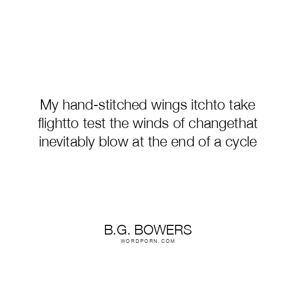 My hand-stitched wings itchto take flightto test the winds of changethat inevitably blow at the end of a cycle