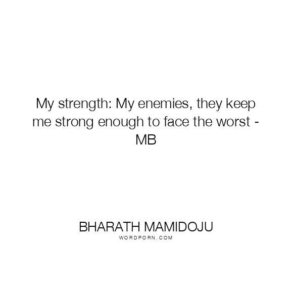 My strength: My enemies, they keep me strong enough to face the worst - MB