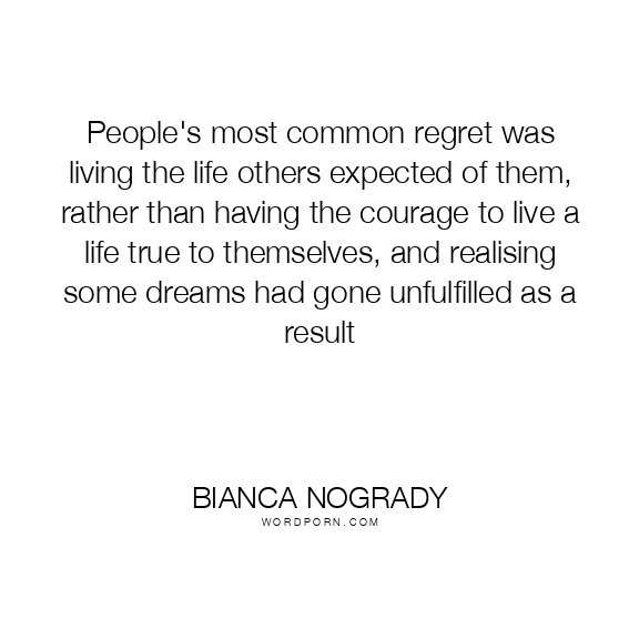 People's most common regret was living the life others expected of them, rather than having the courage to live a life true to themselves, and realising some dreams had gone unfulfilled as a result