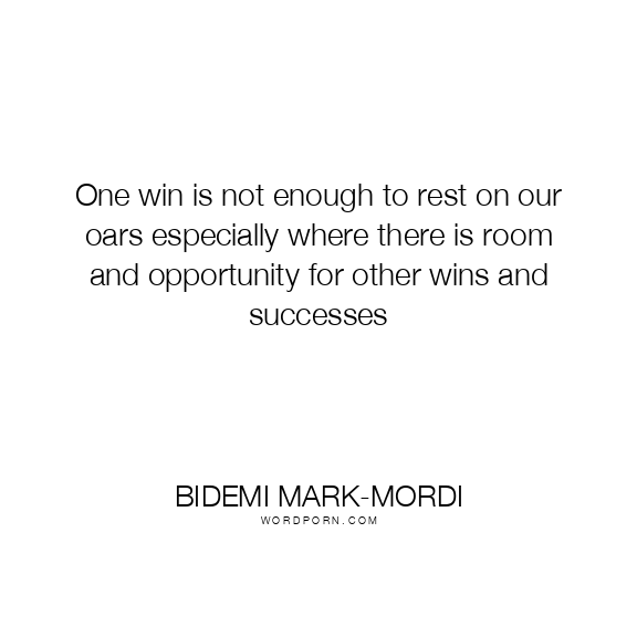 One win is not enough to rest on our oars especially where there is room and opportunity for other wins and successes