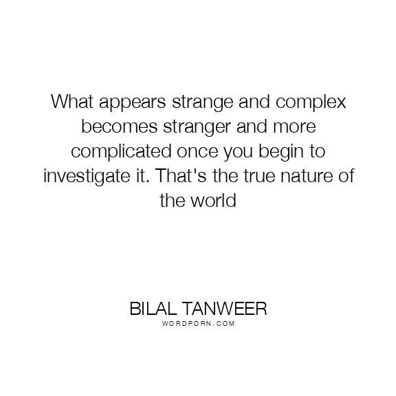 What appears strange and complex becomes stranger and more complicated once you begin to investigate it. That's the true nature of the world