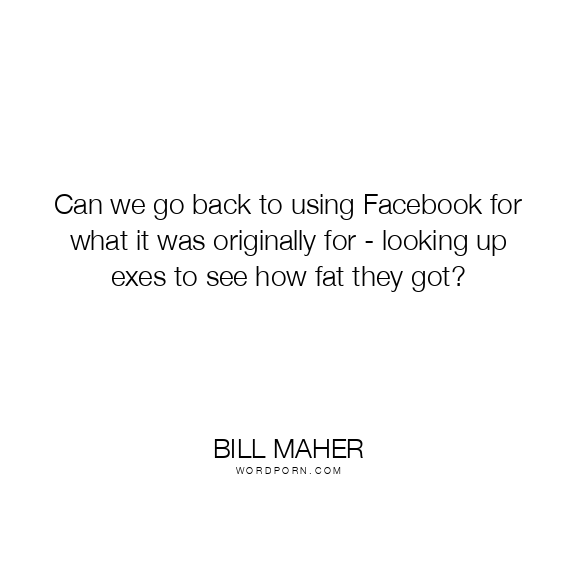 Bill Maher quote. Can we go back to using Facebook for what it was originally for - looking up exes to see how fat they got?