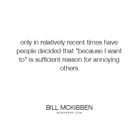 only in relatively recent times have people decided that "because I want to" is sufficient reason for annoying others