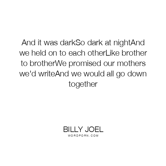 And it was darkSo dark at nightAnd we held on to each otherLike brother to brotherWe promised our mothers we'd writeAnd we would all go down together