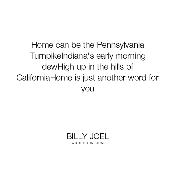 Home can be the Pennsylvania TurnpikeIndiana's early morning dewHigh up in the hills of CaliforniaHome is just another word for you