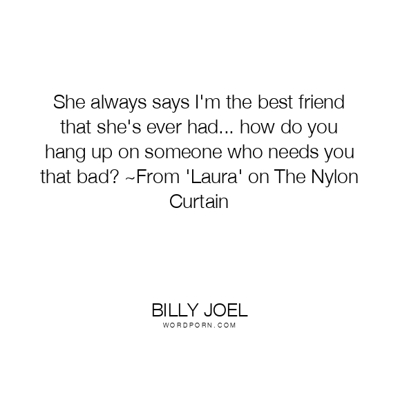 She always says I'm the best friend that she's ever had... how do you hang up on someone who needs you that bad? ~From 'Laura' on The Nylon Curtain