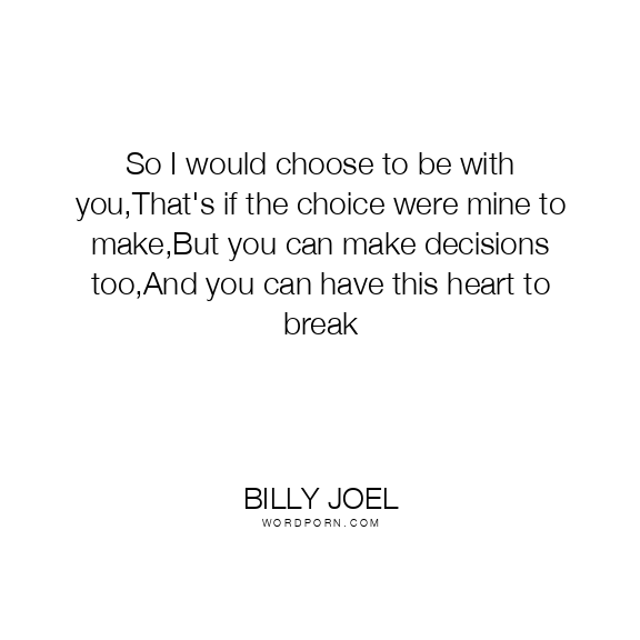 So I would choose to be with you,That's if the choice were mine to make,But you can make decisions too,And you can have this heart to break