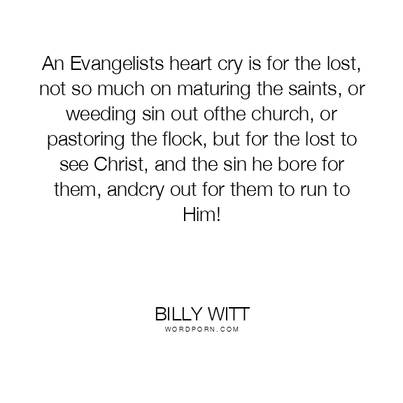 An Evangelists heart cry is for the lost, not so much on maturing the saints, or weeding sin out ofthe church, or pastoring the flock, but for the lost to see Christ, and the sin he bore for them, andcry out for them to run to Him!
