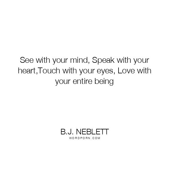 See with your mind, Speak with your heart,Touch with your eyes, Love with your entire being