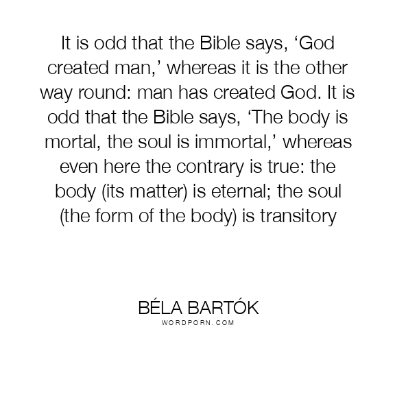 It is odd that the Bible says, ‘God created man,’ whereas it is the other way round: man has created God. It is odd that the Bible says, ‘The body is mortal, the soul is immortal,’ whereas even here the contrary is true: the body (its matter) is eternal; the soul (the form of the body) is transitory