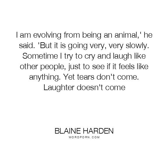 I am evolving from being an animal,' he said. 'But it is going very, very slowly. Sometime I try to cry and laugh like other people, just to see if it feels like anything. Yet tears don't come. Laughter doesn't come