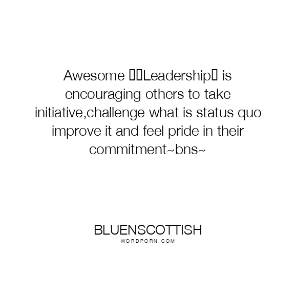 Awesome Leadership is encouraging others to take initiative,challenge what is status quo improve it and feel pride in their commitment~bns~