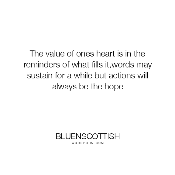 The value of ones heart is in the reminders of what fills it,words may sustain for a while but actions will always be the hope