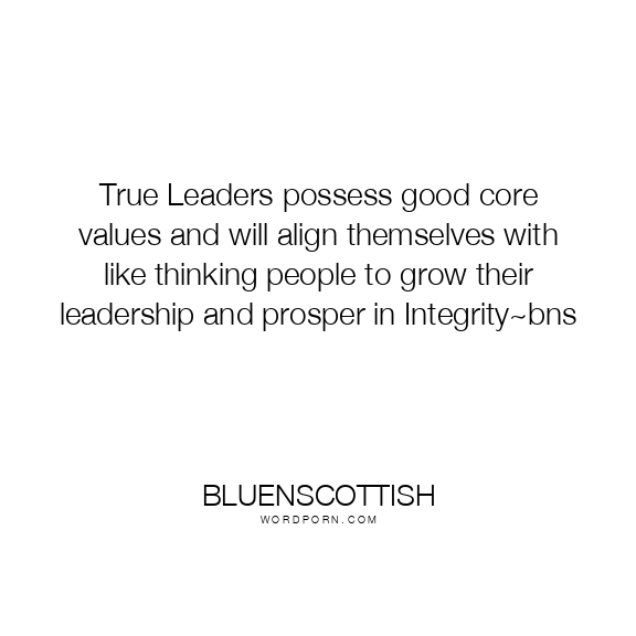 True Leaders possess good core values and will align themselves with like thinking people to grow their leadership and prosper in Integrity~bns