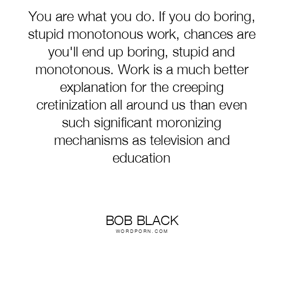 You are what you do. If you do boring, stupid monotonous work, chances are you'll end up boring, stupid and monotonous. Work is a much better explanation for the creeping cretinization all around us than even such significant moronizing mechanisms as television and education