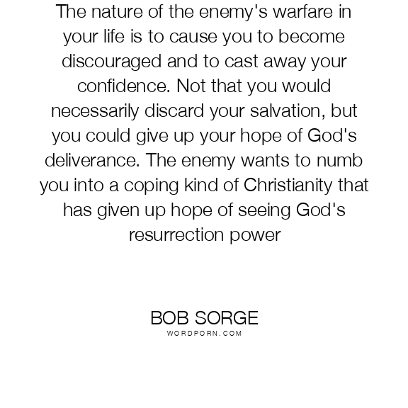 The nature of the enemy's warfare in your life is to cause you to become discouraged and to cast away your confidence. Not that you would necessarily discard your salvation, but you could give up your hope of God's deliverance. The enemy wants to numb you into a coping kind of Christianity that has given up hope of seeing God's resurrection power