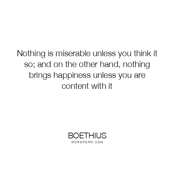 Nothing is miserable unless you think it so; and on the other hand, nothing brings happiness unless you are content with it