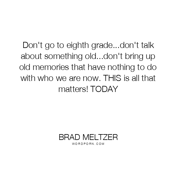 Don't go to eighth grade...don't talk about something old...don't bring up old memories that have nothing to do with who we are now. THIS is all that matters! TODAY