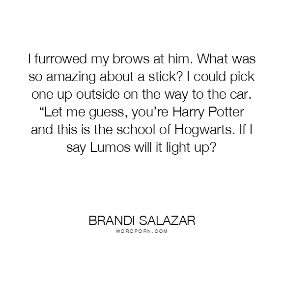I furrowed my brows at him. What was so amazing about a stick? I could pick one up outside on the way to the car. “Let me guess, you’re Harry Potter and this is the school of Hogwarts. If I say Lumos will it light up?