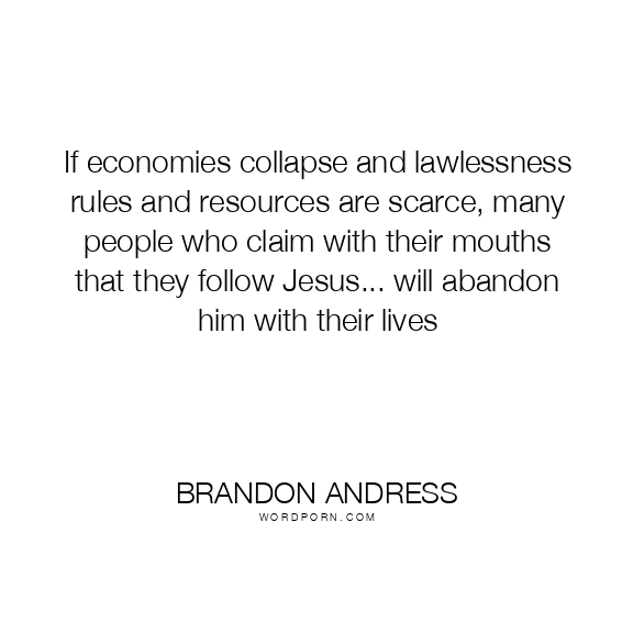 If economies collapse and lawlessness rules and resources are scarce, many people who claim with their mouths that they follow Jesus... will abandon him with their lives