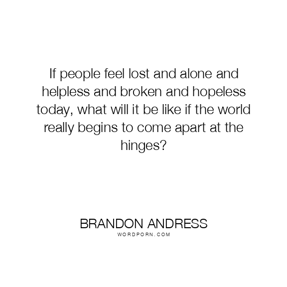 If people feel lost and alone and helpless and broken and hopeless today, what will it be like if the world really begins to come apart at the hinges?