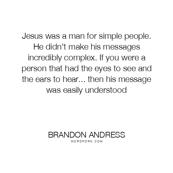 Jesus was a man for simple people. He didn't make his messages incredibly complex. If you were a person that had the eyes to see and the ears to hear... then his message was easily understood