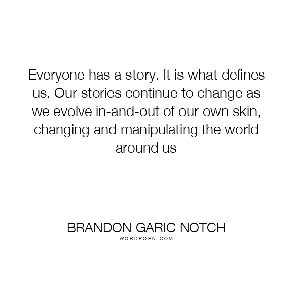 Everyone has a story. It is what defines us. Our stories continue to change as we evolve in-and-out of our own skin, changing and manipulating the world around us