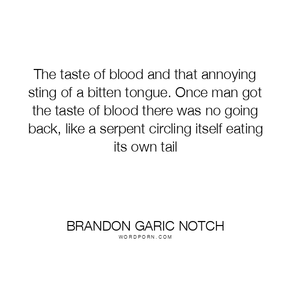 The taste of blood and that annoying sting of a bitten tongue. Once man got the taste of blood there was no going back, like a serpent circling itself eating its own tail