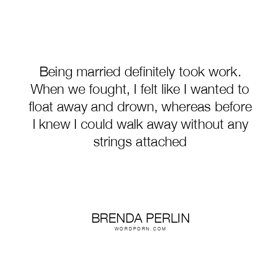 Being married definitely took work. When we fought, I felt like I wanted to float away and drown, whereas before I knew I could walk away without any strings attached
