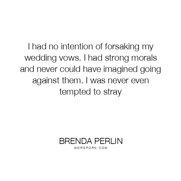 I had no intention of forsaking my wedding vows. I had strong morals and never could have imagined going against them. I was never even tempted to stray