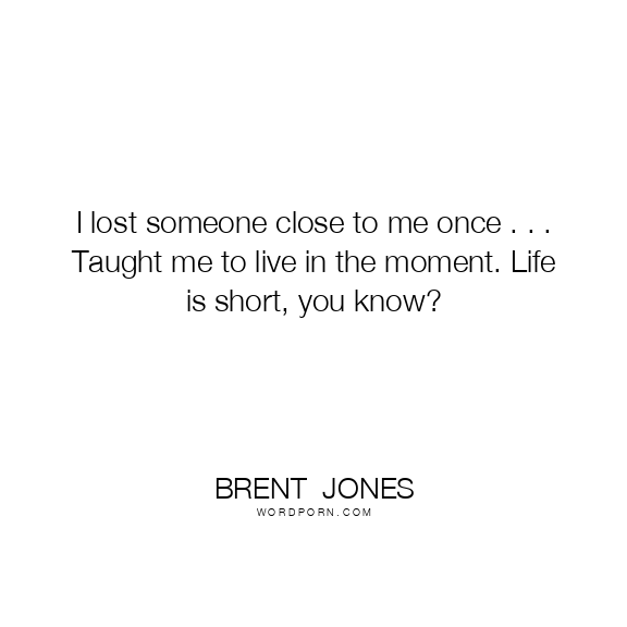 I lost someone close to me once . . . Taught me to live in the moment. Life is short, you know?