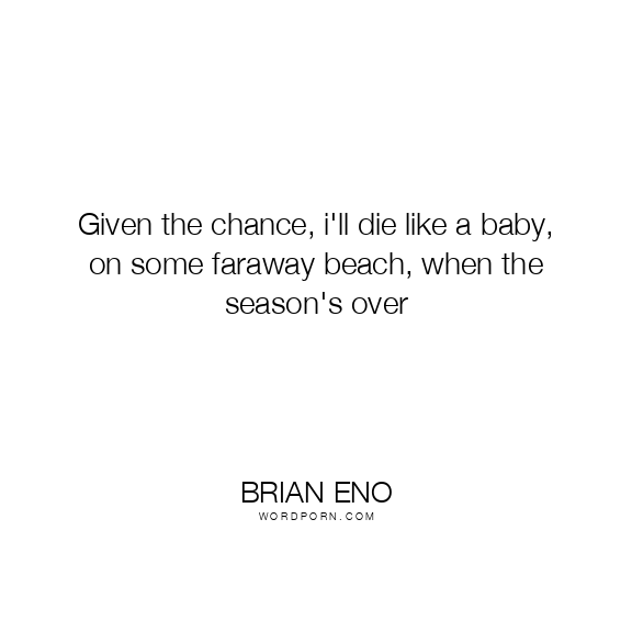 Given the chance, i'll die like a baby, on some faraway beach, when the season's over