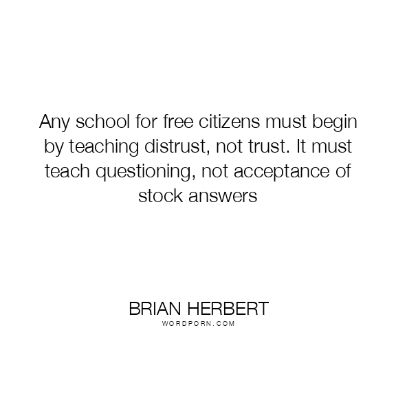 Any school for free citizens must begin by teaching distrust, not trust. It must teach questioning, not acceptance of stock answers