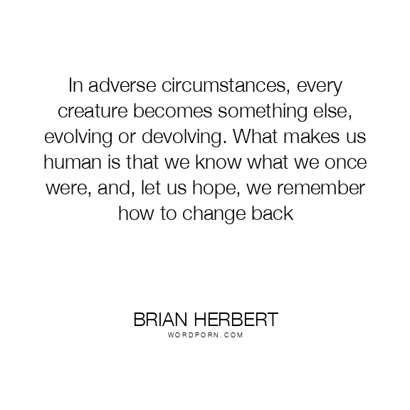 In adverse circumstances, every creature becomes something else, evolving or devolving. What makes us human is that we know what we once were, and, let us hope, we remember how to change back